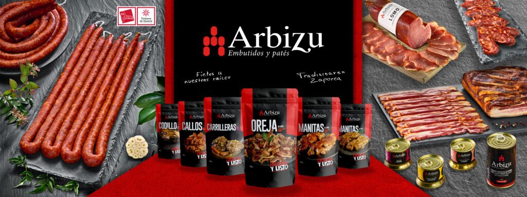 Embutidos Arbizu es una empresa de carácter familiar que comenzó su andadura en 1948 y con el paso del tiempo ha sido capaz de mantener su concepción artesanal incorporando mejoras tecnológicas. Desde el inicio el producto estrella ha sido la txistorra (dulce o picante), pero en los últimos años se ha trabajado para ir incorporando nuevas referencias que han tenido una excelente acogida por los consumidores. De esta manera contamos con un amplio surtido de productos: panceta en sus múltiples versiones ( adobada, blanca, a la pimienta, pieza, taco, loncheada…), chorizo oreado y sarta, patés de cerdo, txistorra ecológica y recientemente se ha incorporado una nueva línea de platos preparados, bajo el lema, Calentar y listo!!!! (chorizo a la sidra, manos en salsa de tomate, manos en salsa de verduras, callos en salsa de tomate, carrilleras al vino tinto, codillo de jamón en su jugo y oreja en salsa de tomate)
